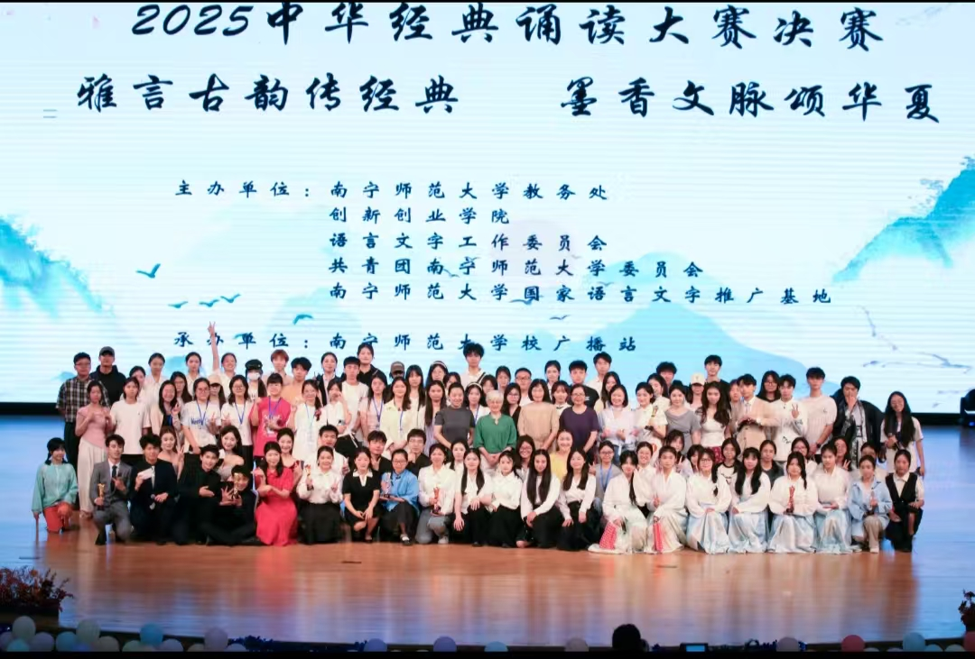本次中华经典诵读大赛决赛的成功举办,是南宁师范大学传承和弘扬中华优秀传统文化的一次生动实践。它不仅为同学们提供了一个展示自我的舞台,更激发了广大师生对中华经典文化的热爱和传承热情。(编辑/刘鹏)