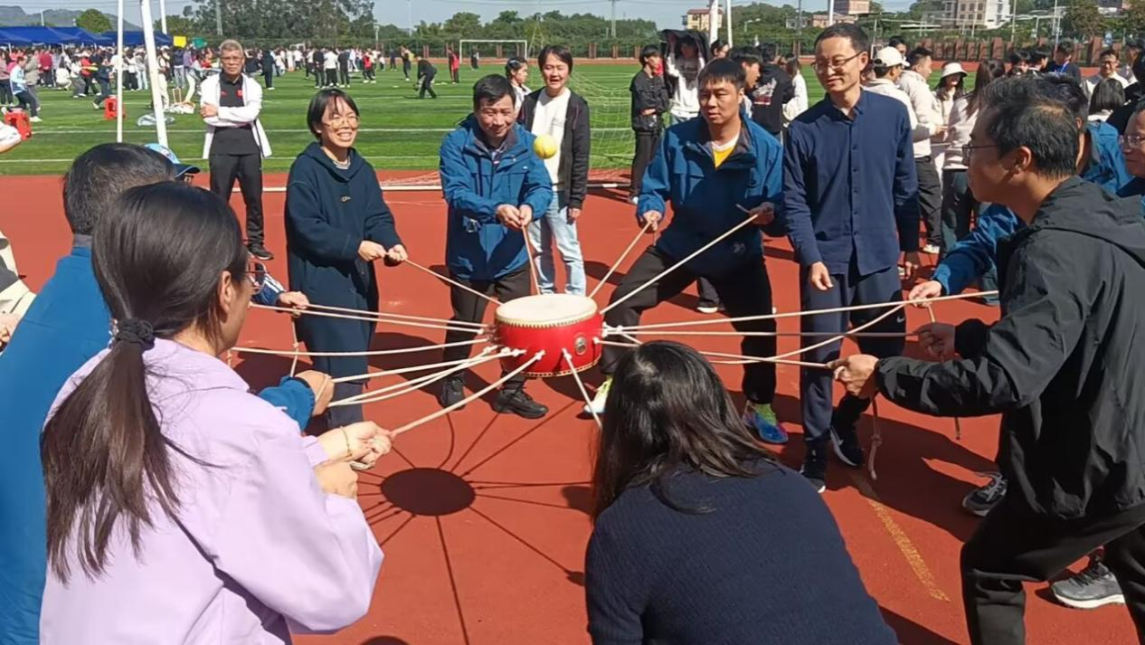 11月20日上午,我校2025年校运动会教职工“鼓动人心”趣味运动在武鸣校区兰园体育场顺利进行。