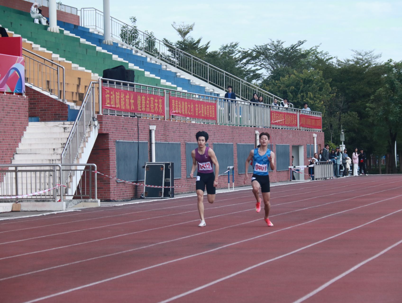 11月21日上午,我校2025年运动会男子200米决赛在武鸣校区松园田径场顺利进行。