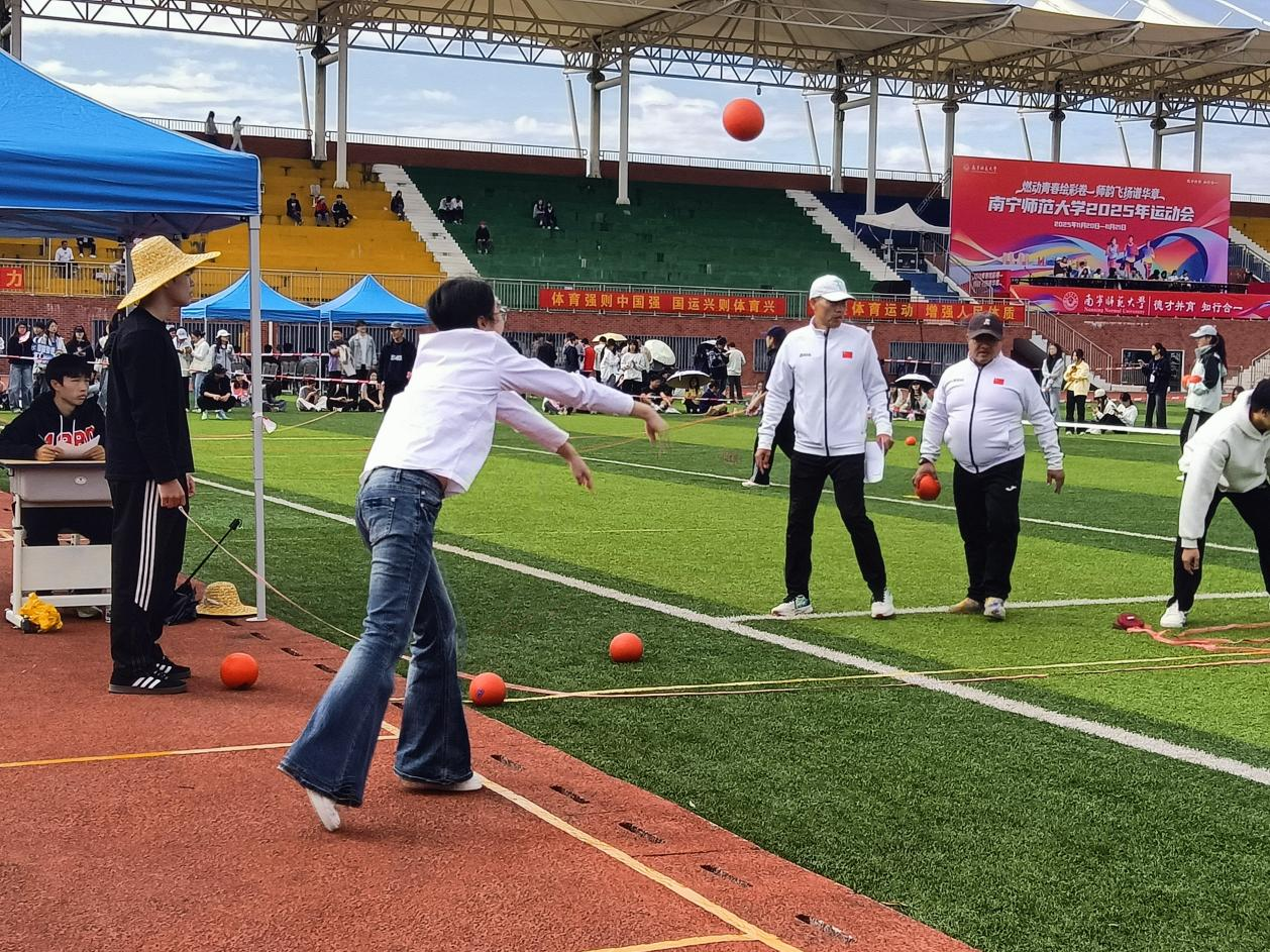 11月20日下午,我校运动会男女20x双手前掷实心球在武鸣校区松园田径场顺利开展。
