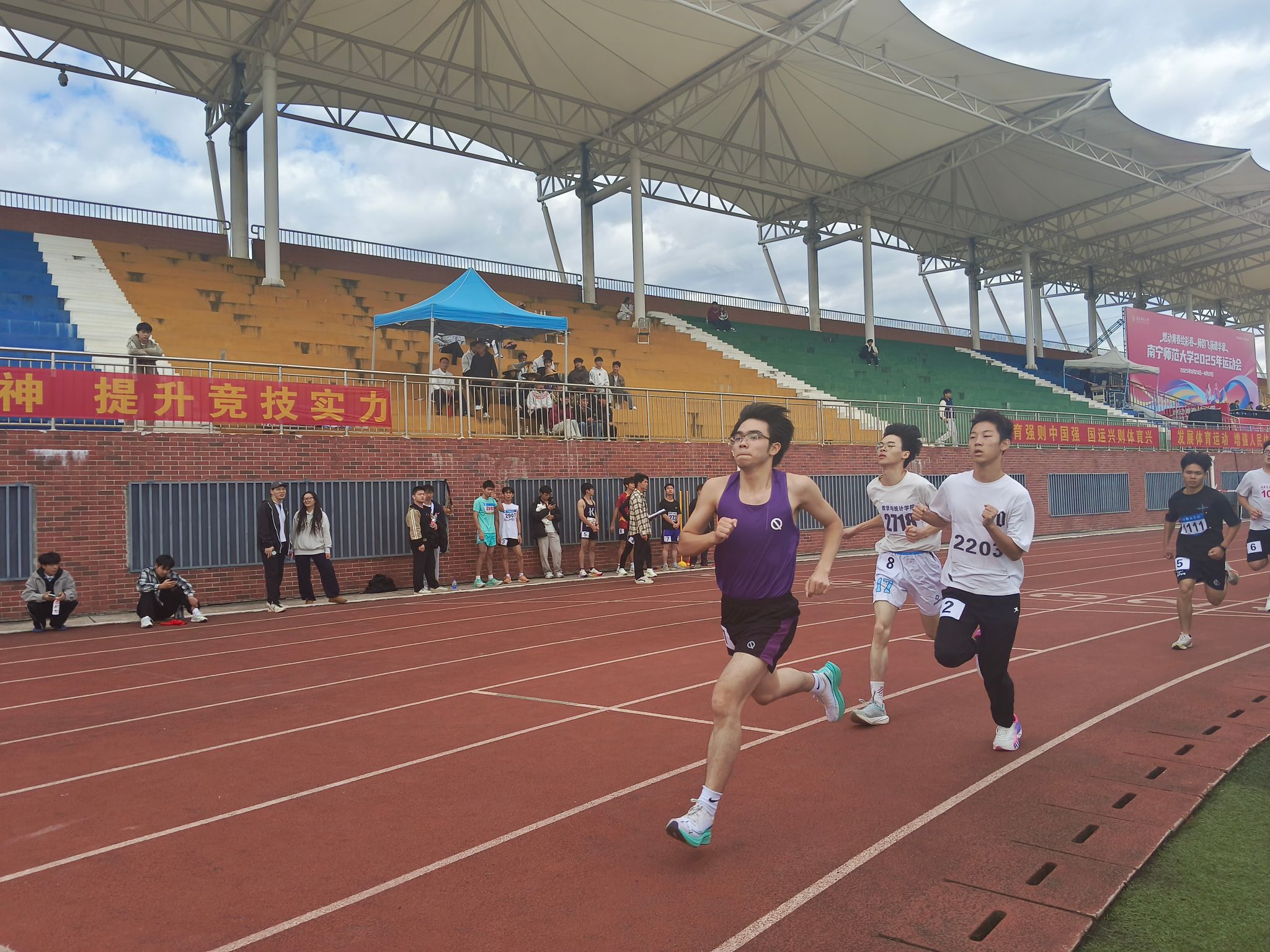 来自各学院的31名选手蓄势待发,齐聚赛场展开角逐。赛前,选手们在跑道上有条不紊地进行热身,动作规范、节奏统一。发令枪声一响,选手们如离弦之箭般冲出起跑线,奋力奔跑。赛场内外,速度与激情的碰撞交织,留下了令人难忘的精彩瞬间。