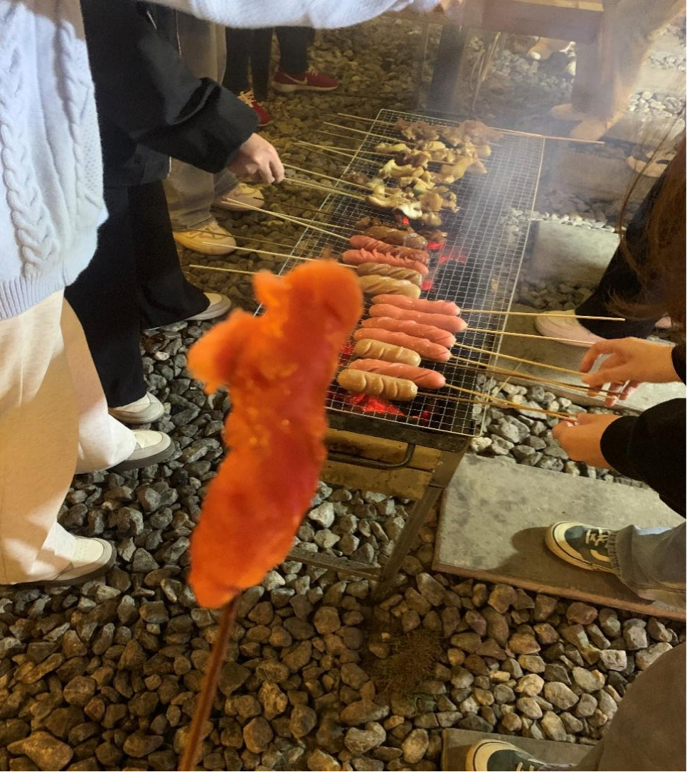 烤架上滋滋作响的肉串腾起烟雾,团建活动的喧闹裹着孜然香气。有人专注地串起食材,有人守着烤架翻动签子,最后所有人都将劳动成果化作舌尖的雀跃。多年后某个相似的夏夜,记忆突然翻涌——原来当年呛进眼睛的烟,早把二十岁的喧闹熏成了记忆里的琥珀。