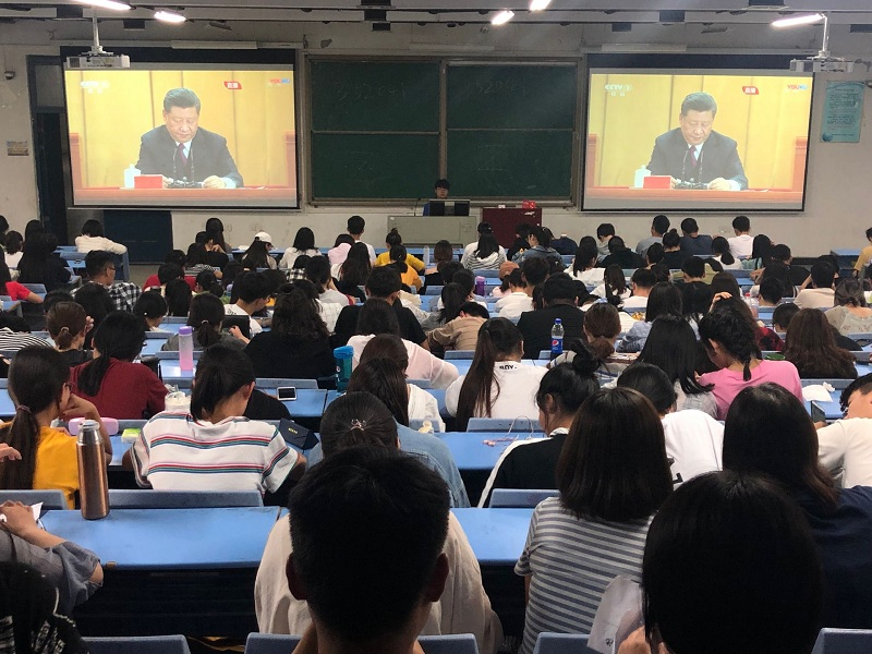 动物医学院理论学习型社团求是协会组织所有在校学生党员、预备党员和入党积极分子于5月10日晚上7:00在合400教室观看学习了在人民大会堂召开的《纪念五四运动100周年大会》视频。