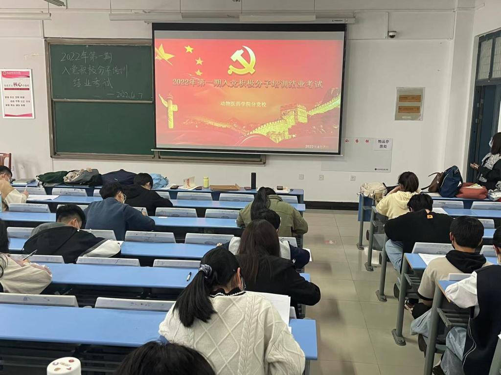 为检验入党积极分子在党课培训班的学习情况,考察入党积极分子的理论知识水平。根据党校安排,2022年4月7日下午14:30-16:00,动物医药学院组织2022年第一期入党积极分子在一号教学楼合204、合303、合401与A202进行入党积极分子党课结业考试。本期入党积极分子培训班172名入党积极分子参加了此次考试。