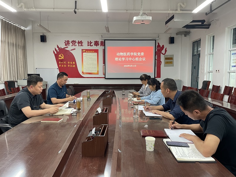 2024年5月11日,动物医药学院于生工楼C401会议室召开党纪学习教育暨党委理论学习中心组学习会议,会议由院党委书记胡卫东主持,学院理论学习中心组成员参加会议。