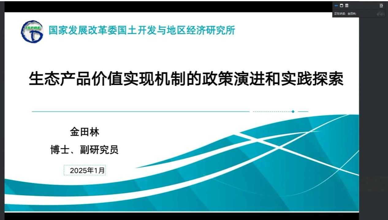 1月8日,受地理科学与规划学院邀请,国家发展改革委国土开发与地区经济研究所副研究员金田林博士、中咨集团生态技术研究所部门副主任、高级工程师朱梦洵博士为我院师生做了题为“生态产品价值实现机制的政策演进和实践探索”、“生态产品总值核算和特定地域单元价值核算的区别与联系”的学术报告。此次报告会由我院副院长赵银军教授主持。