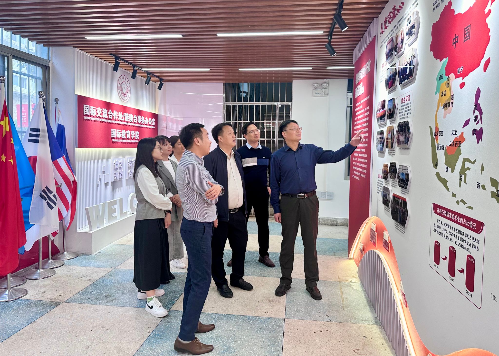 会谈结束后,双方一同参观了外语楼国际文化交流展示区。
