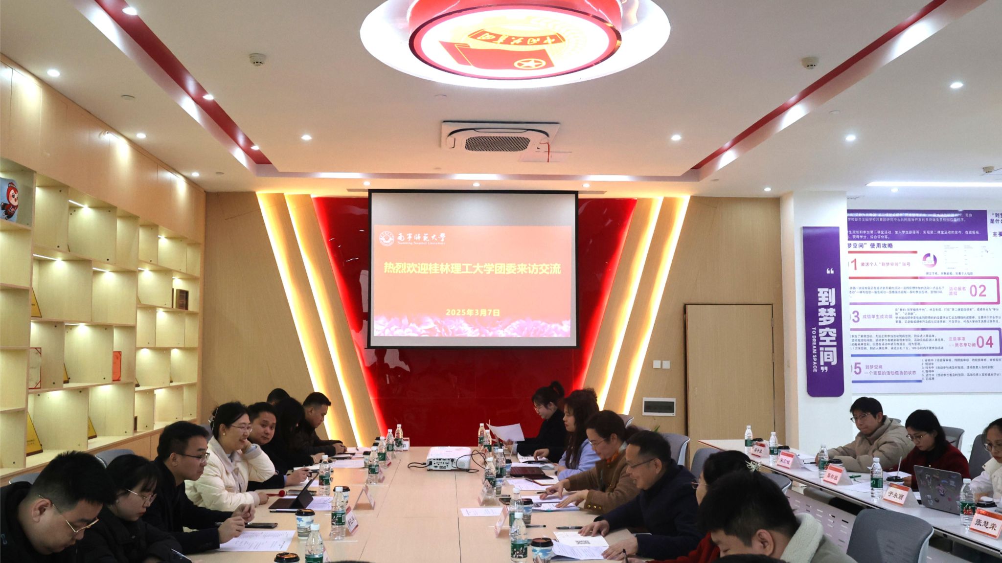 会上,校团委主要负责人对桂林理工大学团委一行的到来表示欢迎,并详细介绍了我校在思想引领、组织建设、学生社团、社会实践等方面的工作情况,并期望今后能持续加强两校团学工作合作交流,不断推动团学工作高质量发展。桂林理工大学团委书记潘思伊从创新创业教育、校园文化建设、学生组织管理等方面介绍了桂林理工大学团委工作情况,并表示希望通过此次交流,进一步加深两校团委的联系,共同探索新时代高校共青团工作的新思路、新方法。随后,双方围绕学生思想引领、创新创业、社会实践、第二课堂、学生社团等展开了深入细致的交流。