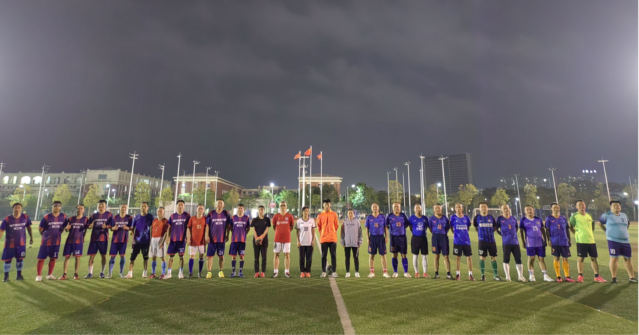3月13日晚,南宁师范大学武鸣校区松园足球场内灯火通明,一场别开生面的足球友谊赛在此拉开帷幕。我校教职工足球队、学生女子足球队与武鸣区公安系统足球队齐聚绿茵场,以球会友、共促发展。