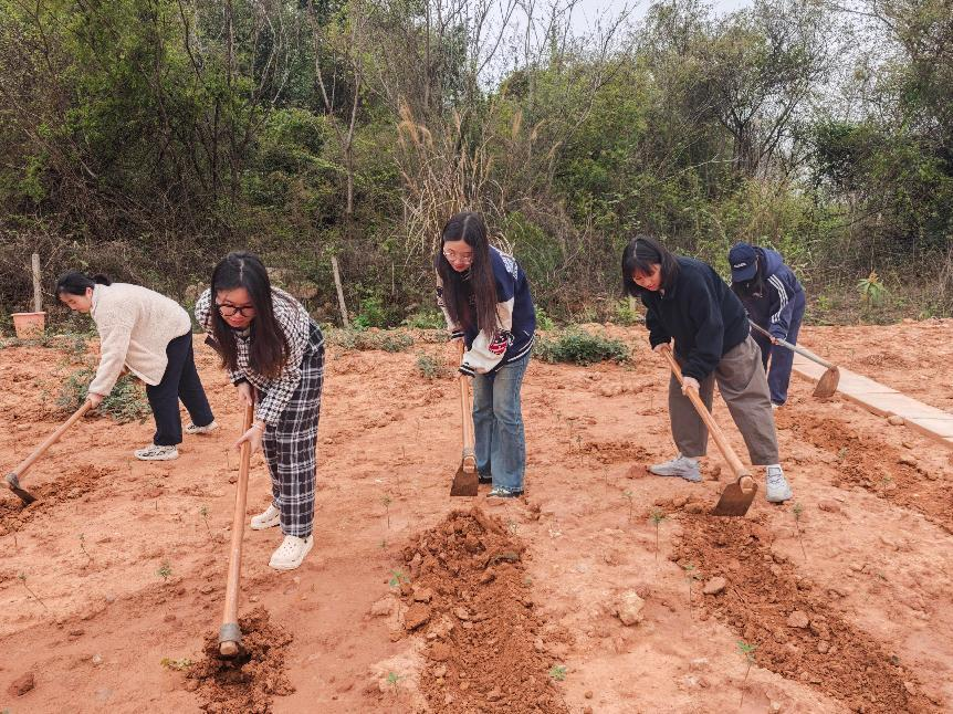 活动开始前,支部副书记黄小倩针对本次播种花生活动进行安排,给同学们分发镰刀、小锄头等工具。随后,同学们有序地开展翻土、挖坑、撒肥料、填土等工作,现场劳动热情高涨。