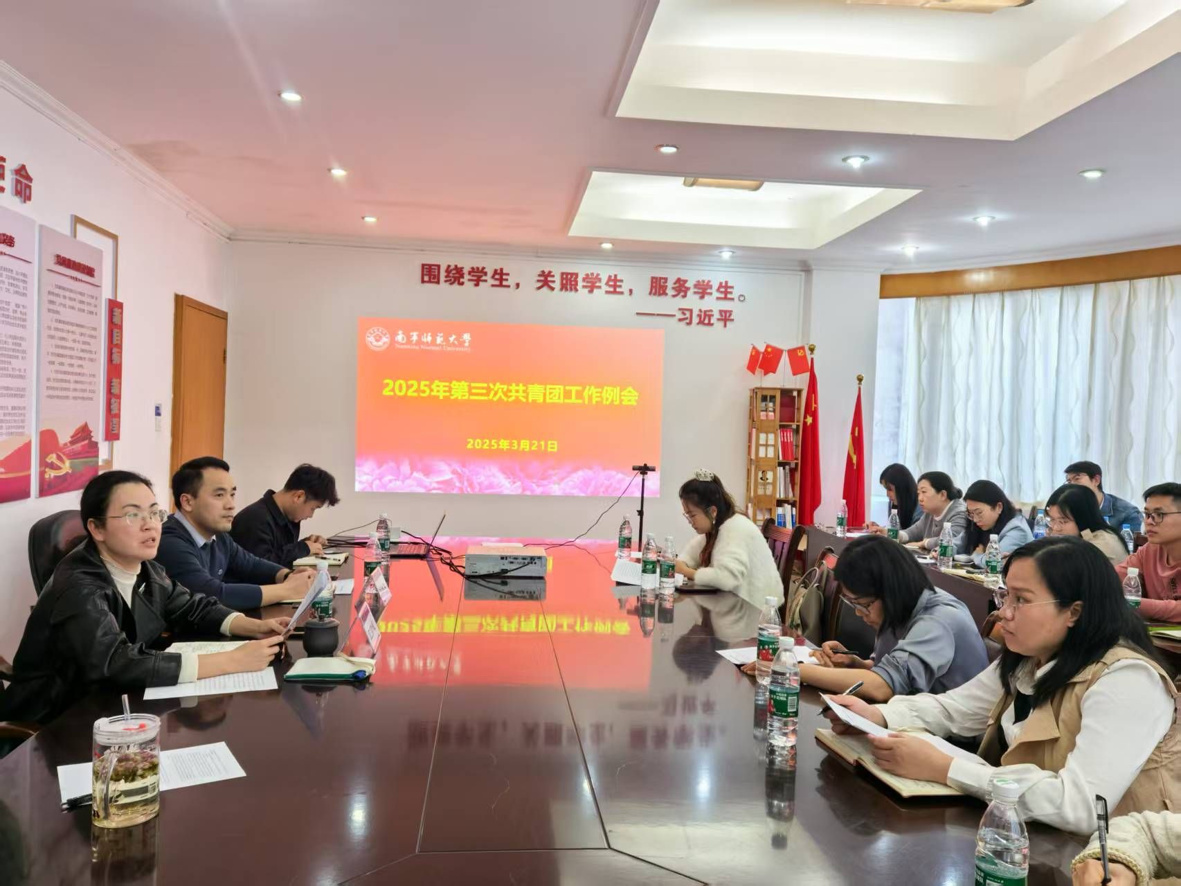 3月21日下午,我校在明秀校区行政楼四楼会议室召开2025年第三次共青团工作例会,校团委全体人员、各学院团委书记参加了会议。