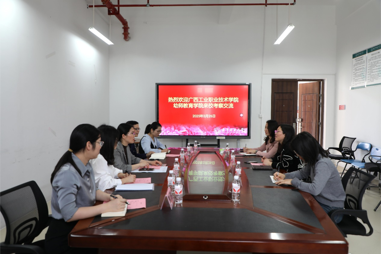 2025年3月26日下午,广西工业职业技术学院幼师教育学院林英副院长等一行5人到我校教育科学学院开展交流会。教育科学学院副院长张瑞、学前教育系副主任张媛及科研助理李春炜参加此次交流会。交流会由张瑞副院长主持。