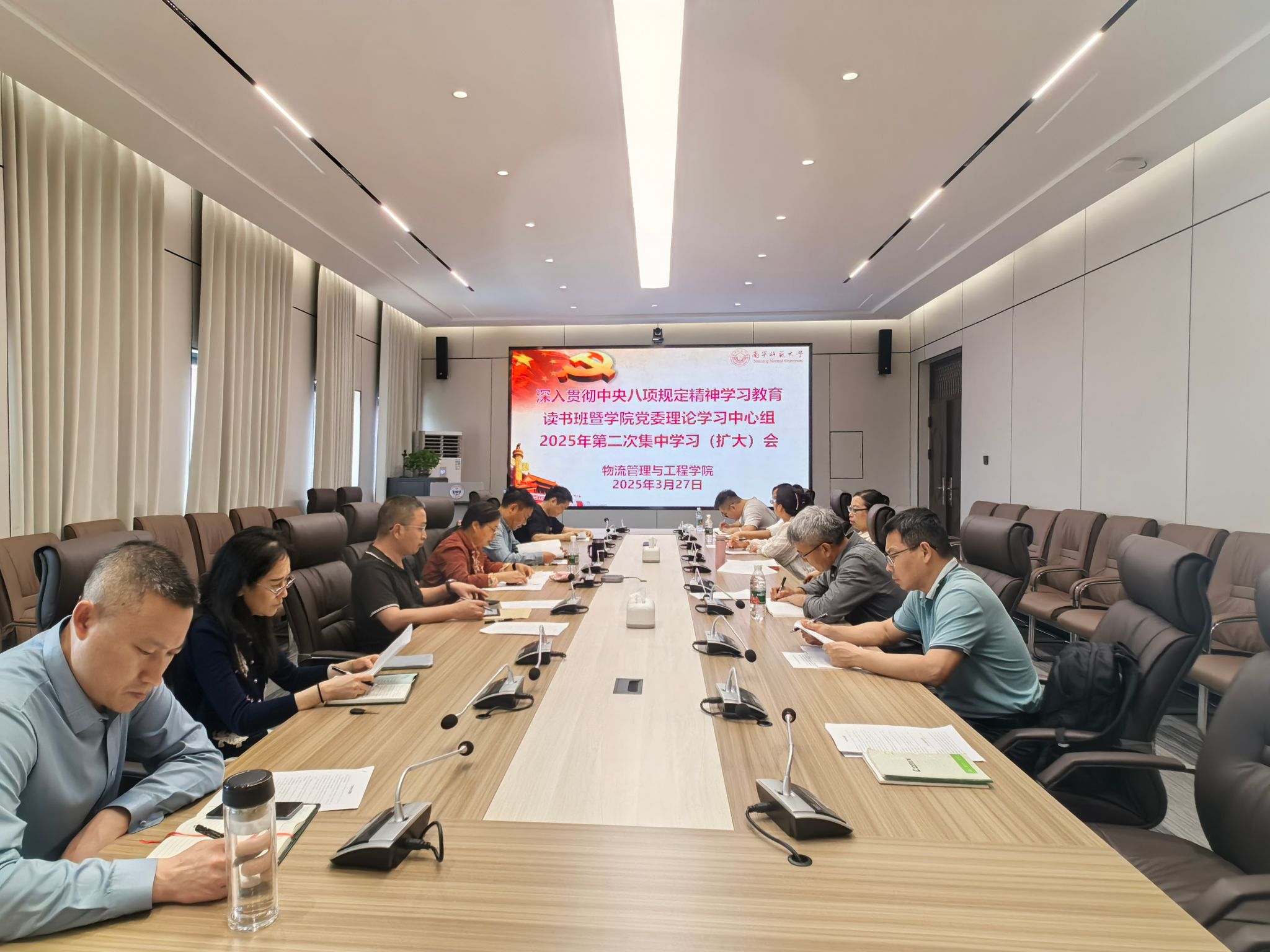 3月27日下午,物流管理与工程学院召开深入贯彻中央八项规定精神学习教育读书班暨学院党委理论学习中心组2025年第二次集中学习(扩大)会。学院党委书记陈兵主持会议,学院党委理论学习中心组全体成员参加会议,学院非党员领导干部列席会议。