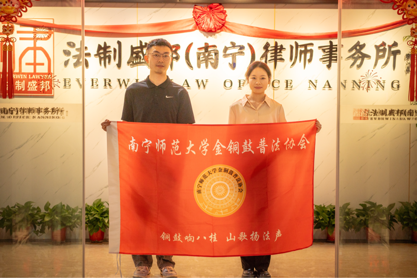 3月27日,南宁师范大学与广东法制盛邦(南宁)律师事务所举行法学专业教学实践基地签约暨揭牌仪式。金铜鼓普法协会主要负责人尹彭媛、陈友林、赵滢滢参加此次合作共建活动,与律所共同探讨合作推进广西青少年法治宣传教育的高质量发展。