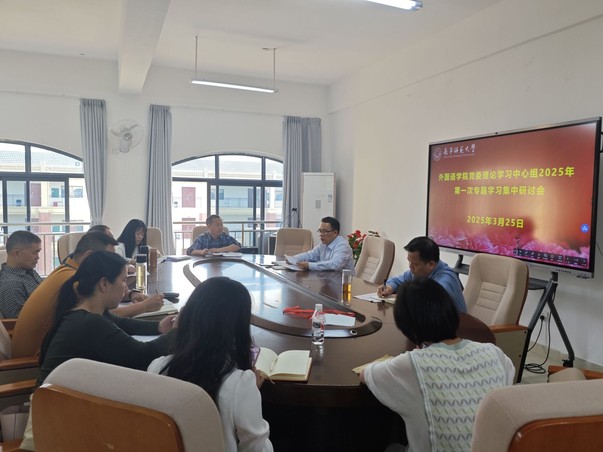 3月25日,外国语学院党委理论学习中心组召开本年度第一次专题学习集中研讨会。会议由学院党委书记苏华主持,学院党委委员、纪委委员及各党支部书记参会。
