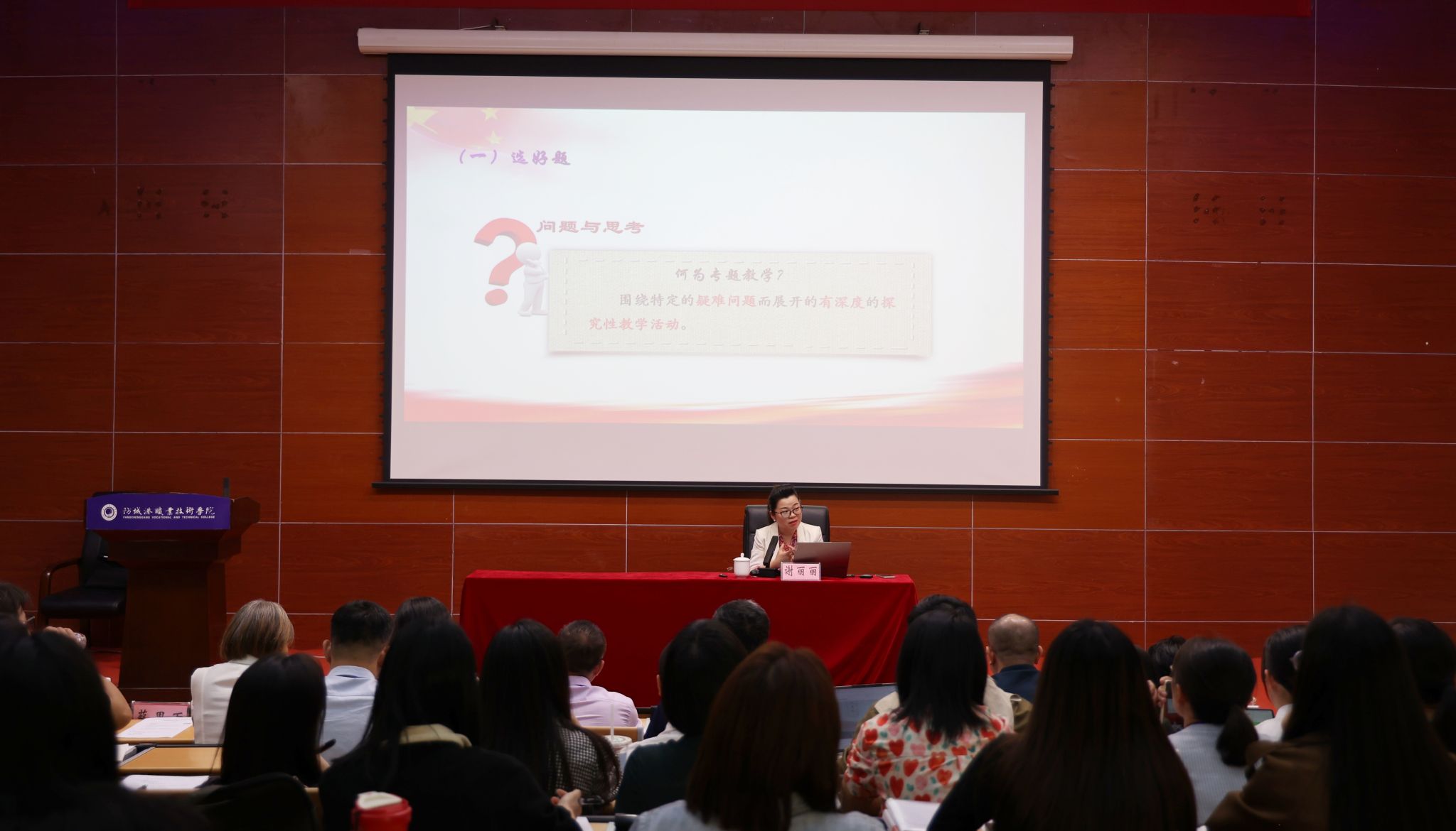 我校马克思主义学院院长助理谢丽丽副教授作了《关于思政课教学设计核心要素的思考》专题报告,从把握标准突出要求,研究要素精心设计,全情投入打造金课三个方面分析了思政课教学设计的核心要素,并结合实际案例,分享了创新思政课教学的有效路径。