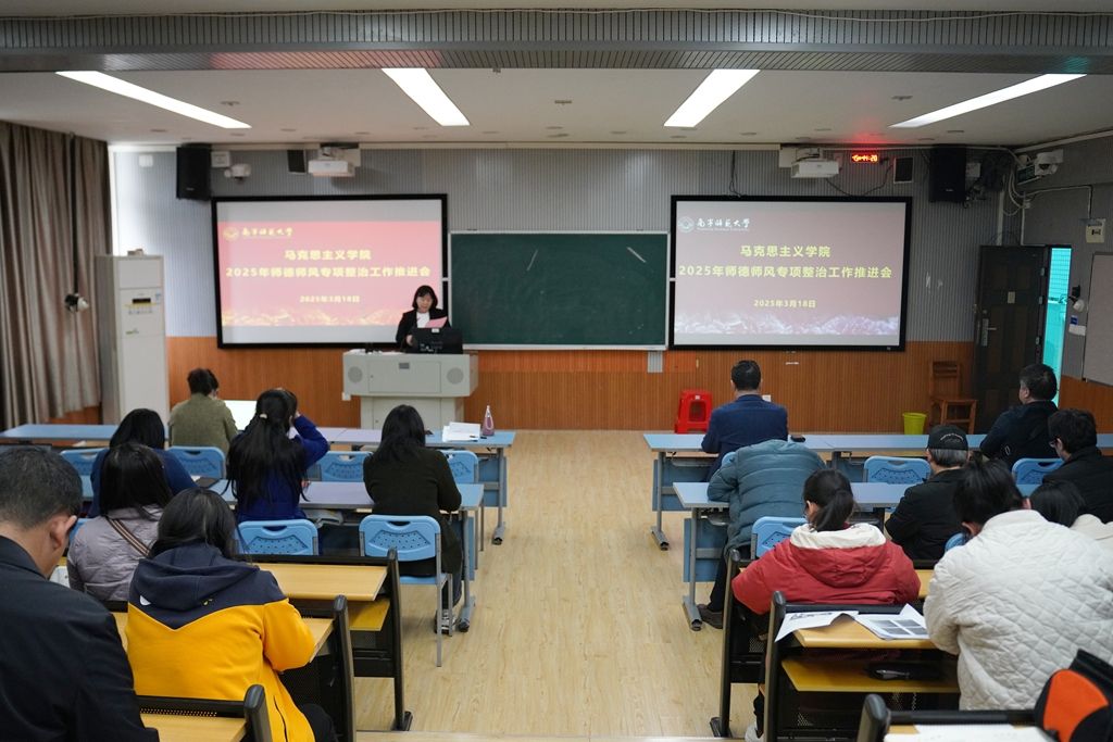 3月18日下午,马克思主义学院在明秀校区召开师德师风专项整治工作推进会,学院党政领导班子成员及全体教职工参会。