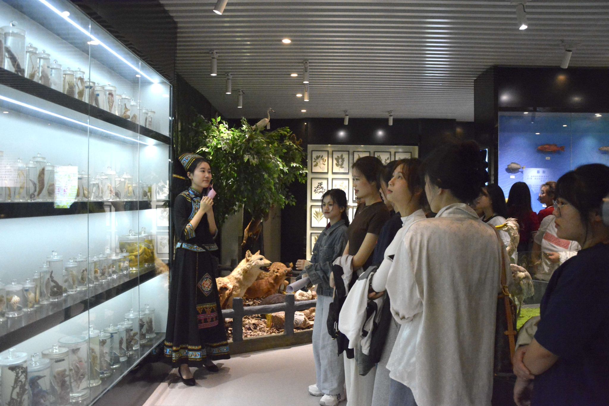 活动中,国际教育学院的师生参观了明德馆,深入了解初等教育学院的发展历程和成就;走进生物标本室,被琳琅满目的生物标本所吸引,纷纷驻足观赏,交流讨论;在师范生基本功作品展示区,留学生们对中国学生的书法、绘画等作品赞不绝口。