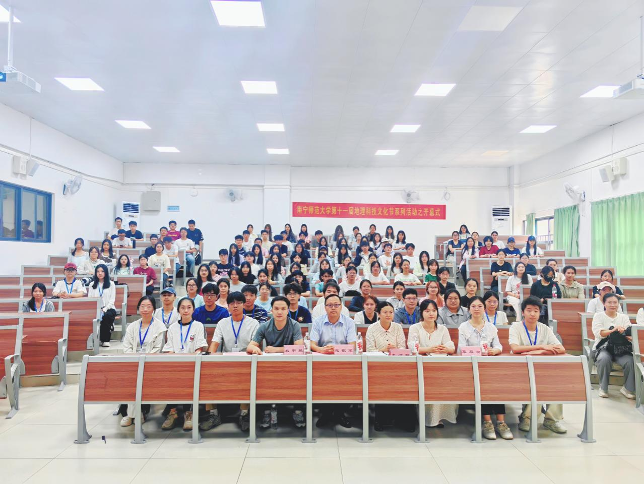 4月29日,地理科学与规划学院在武鸣校区地源楼B107室举办第十一届地理科技文化节开幕式。学院副院长赵银军、学工办辅导员李洁柳、覃辰柳、农宇鹏及百余名学生参加活动。