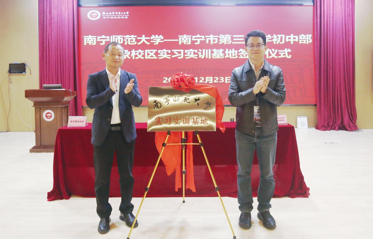 作为“高校智力支持”的核心力量,法学与社会学院在此次合作中扮演了关键角色。在各方见证下,罗永仕副院长与南宁三中吴斌副校长代表双方签署了共建实习实训基地协议,吴少进副院长随后为基地揭牌。此前,陈仕成副部长与吴斌副校长共同为“桂童护航”项目驻校社工服务站揭牌。这一系列举措,不仅为项目落地提供了坚实的实践平台,也为学院相关专业人才培养开辟了新的路径。