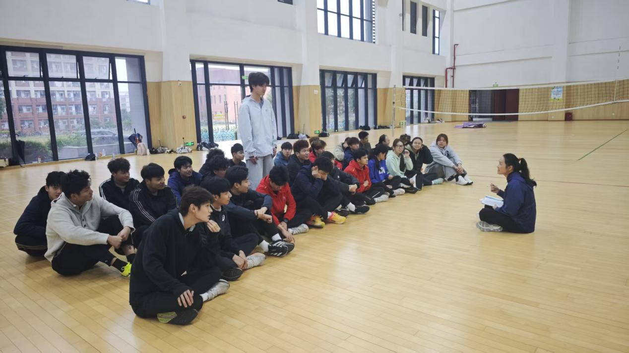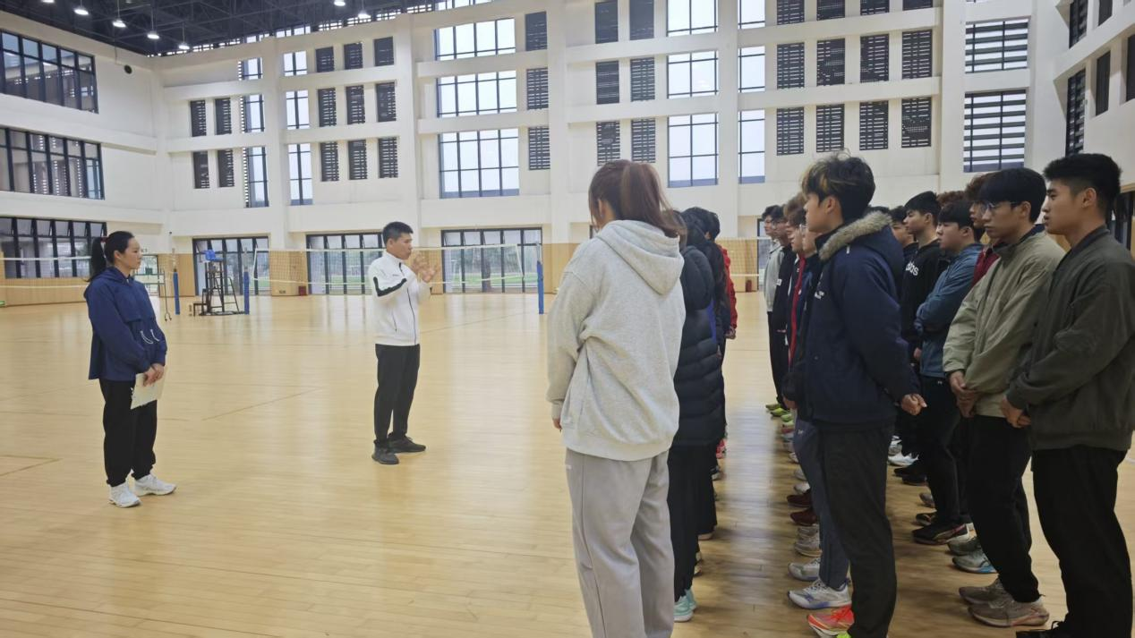 韦永丽老师在自我介绍中深情回顾了自己从广西乡村一路奔向国际赛场的奋斗历程。她表示,回归母校执教,是人生“全新的赛道”,也是一份沉甸甸的责任。她承诺将把自己多年积累的经验倾囊相授,助力学弟学妹们在体育道路上走得更远、更稳。结合自身训练经历,她还向同学们明确了课堂纪律,强调规范、坚持与团队协作的重要性。