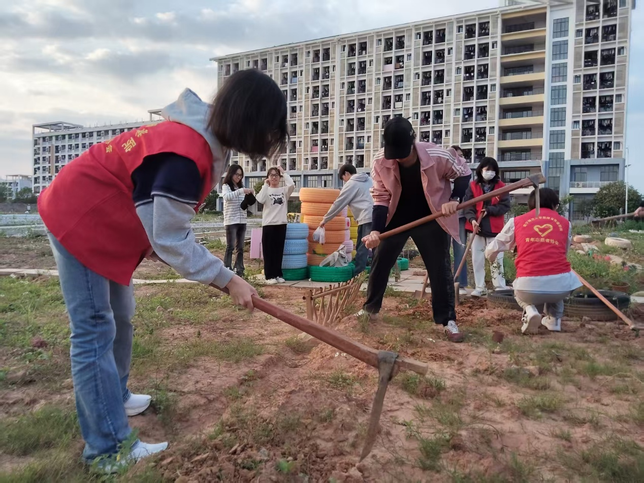 (志愿者挥锄翻土)
