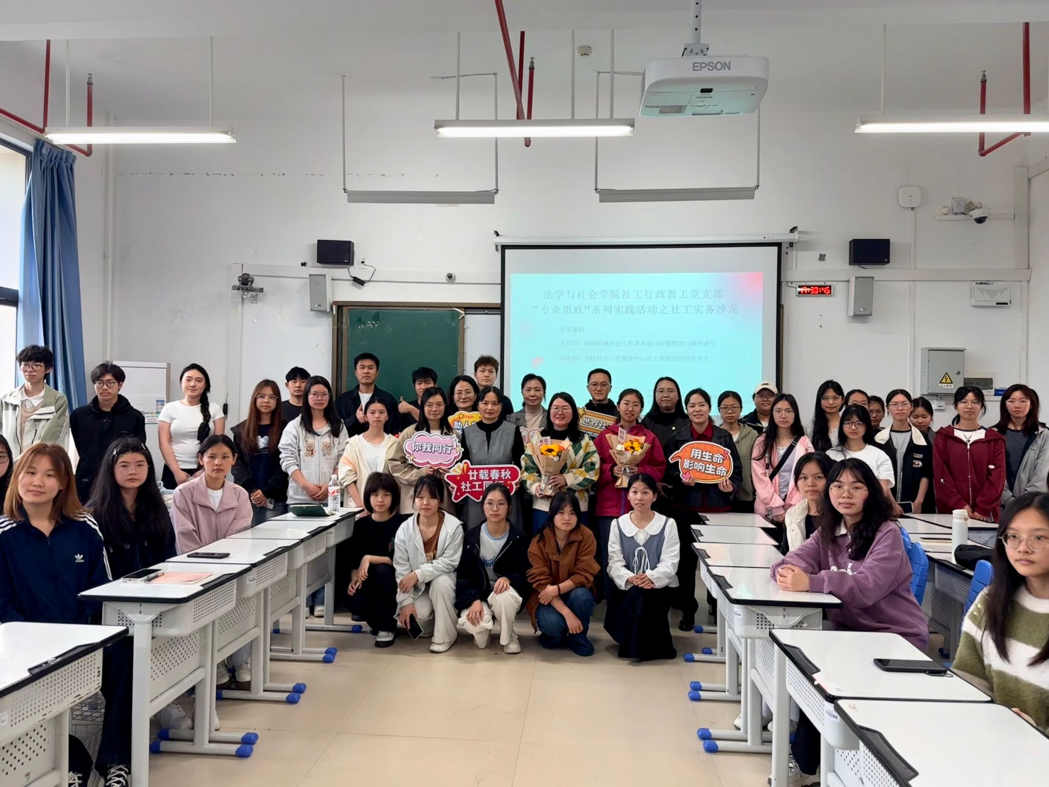 为深化“专业思政”建设,促进社会工作理论与实务深度融合,搭建在校学子与优秀校友的交流平台,3月17日下午,在第二十个世界社会工作日之际,法学与社会学院社会工作系、社工行政教工党支部在五合校区文综603联合举办了“专业思政”系列实践活动之社工实务交流会。