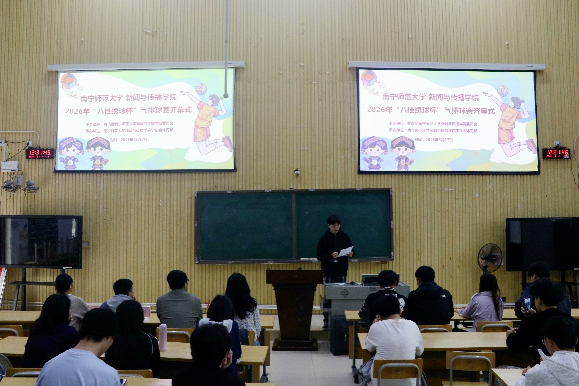 3月17日中午,新闻与传播学院在五综107教室举办“八桂绣球杯”气排球比赛开幕式。学工办辅导员惠旋、兰浩玮、唐兰、覃力出席本次会议,各班体委、参赛选手及裁判员参加会议。
