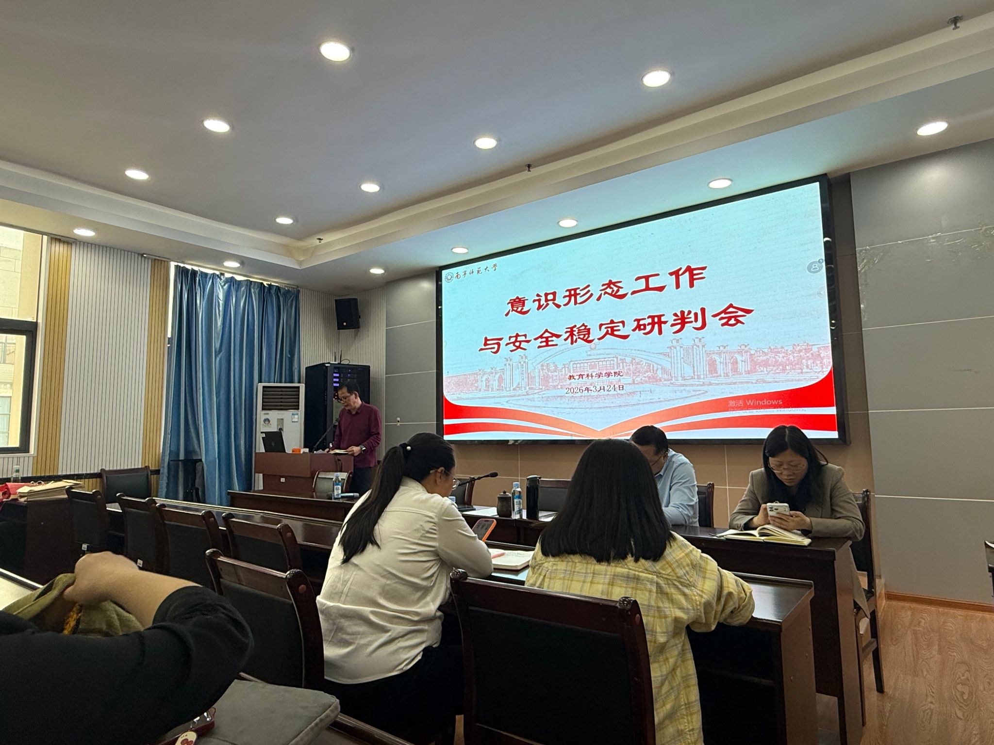 会议同时开展学院全体教职工第一季度校园安全稳定和意识意识形态形势分析研判会。余朝文强调全院教职工要提高政治站位,强化底线思维,紧盯意识形态领域风险苗头,抓实抓细校园安全各项举措。坚持问题导向,闭环管理,切实把风险化解在萌芽状态,持续筑牢学院意识形态安全防线和校园稳定屏障,为学校各项事业发展提供坚强保障。