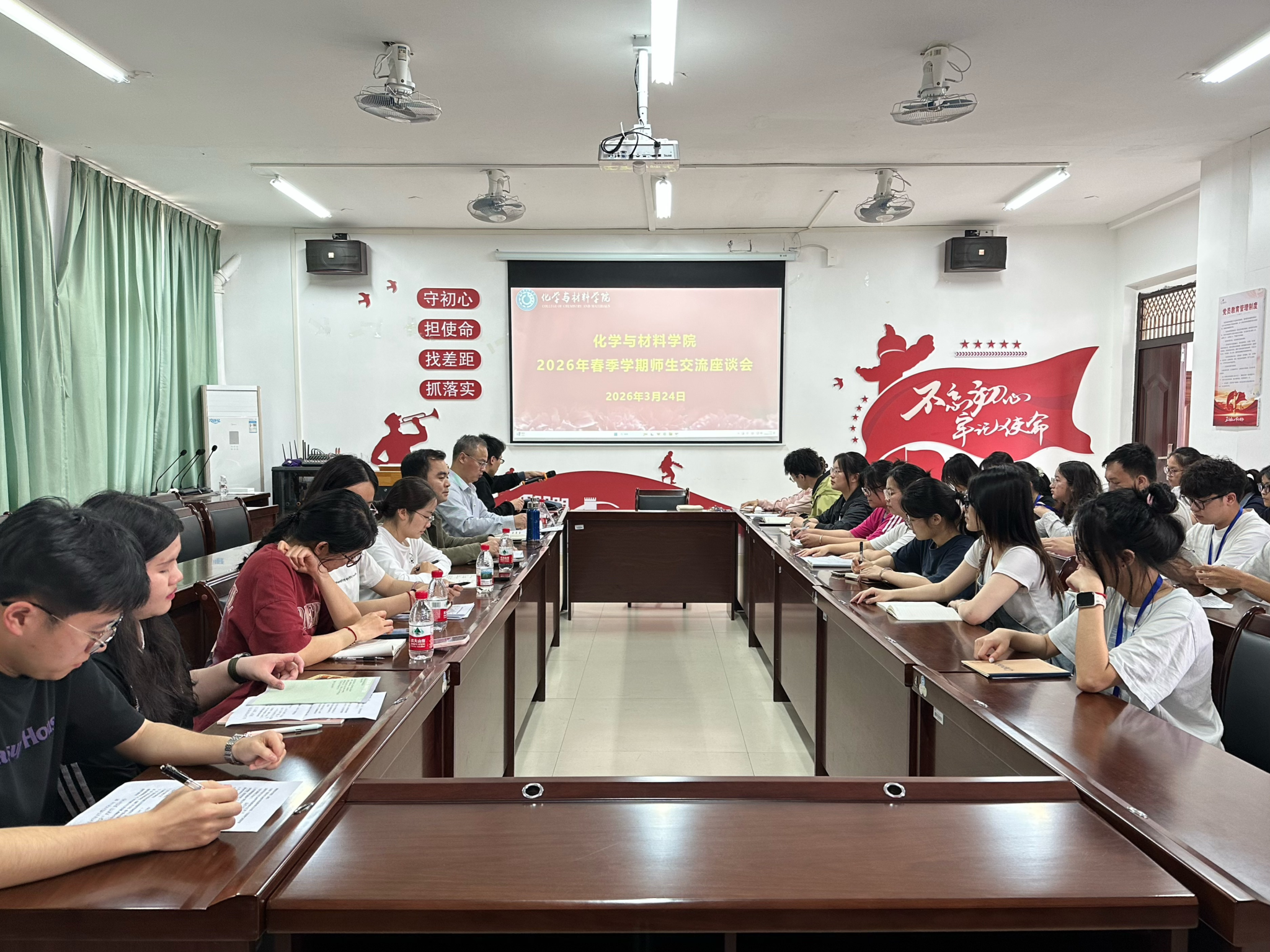 为深入了解学生干部的思想动态、工作实际与成长需求,进一步加强学院党委与学生干部的沟通与联系,3月24日下午,化学与材料学院在地化楼B228会议室举行春季学期师生交流座谈会。会议由学院党委副书记苏学权(主持党委工作)主持,学院辅导员、兼职辅导员及学生干部代表参加座谈。
