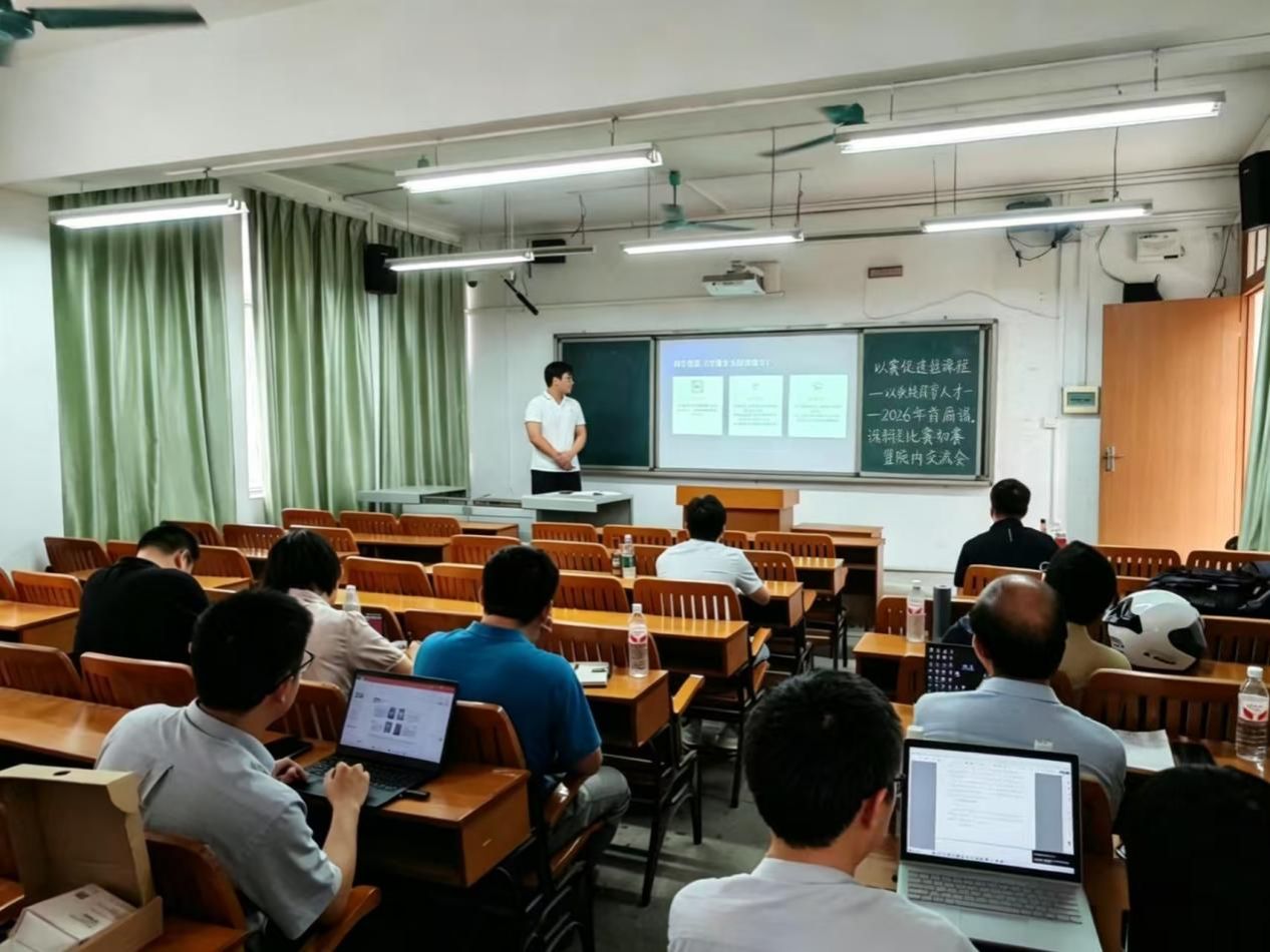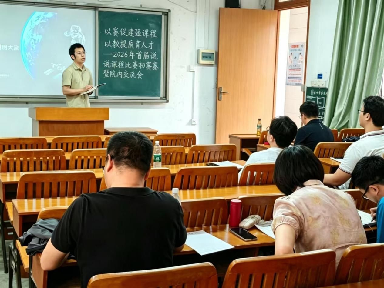 为落实《南宁师范大学课程建设质量标准(试行)》要求,扎实推进校级首届说课程比赛遴选工作,深化课程内涵建设,提升教师课程设计与教学创新能力,4月7日下午,自然资源与测绘学院2026年首届说课程比赛初赛暨院内教学交流会在明秀校区思远楼教205顺利举行。学院副院长段炼,土地资源管理系周兴教授、吴壮金副教授,房地产开发与管理系娄信强主任及校级教学督导肖智副教授担任点评专家,部分教师参加了现场观摩。