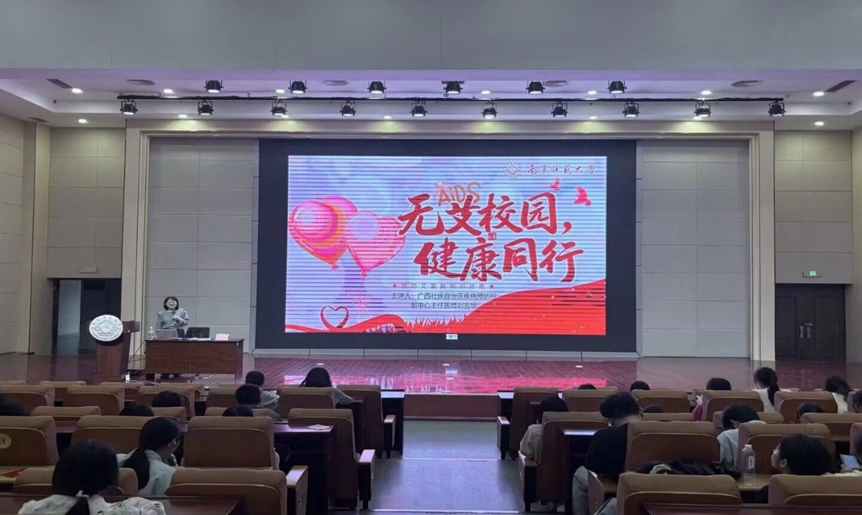 讲座特邀广西壮族自治区疾病预防控制中心主任医师刘玄华主讲。刘玄华主任围绕艾滋病基本知识、传播途径、发病机理、主要症状及科学预防措施等内容进行系统讲解,用通俗易懂的语言澄清认知误区,重点讲解大学生群体常见风险行为与防护要点,引导大学生科学认识艾滋病、远离高危行为、提升自我保护能力。