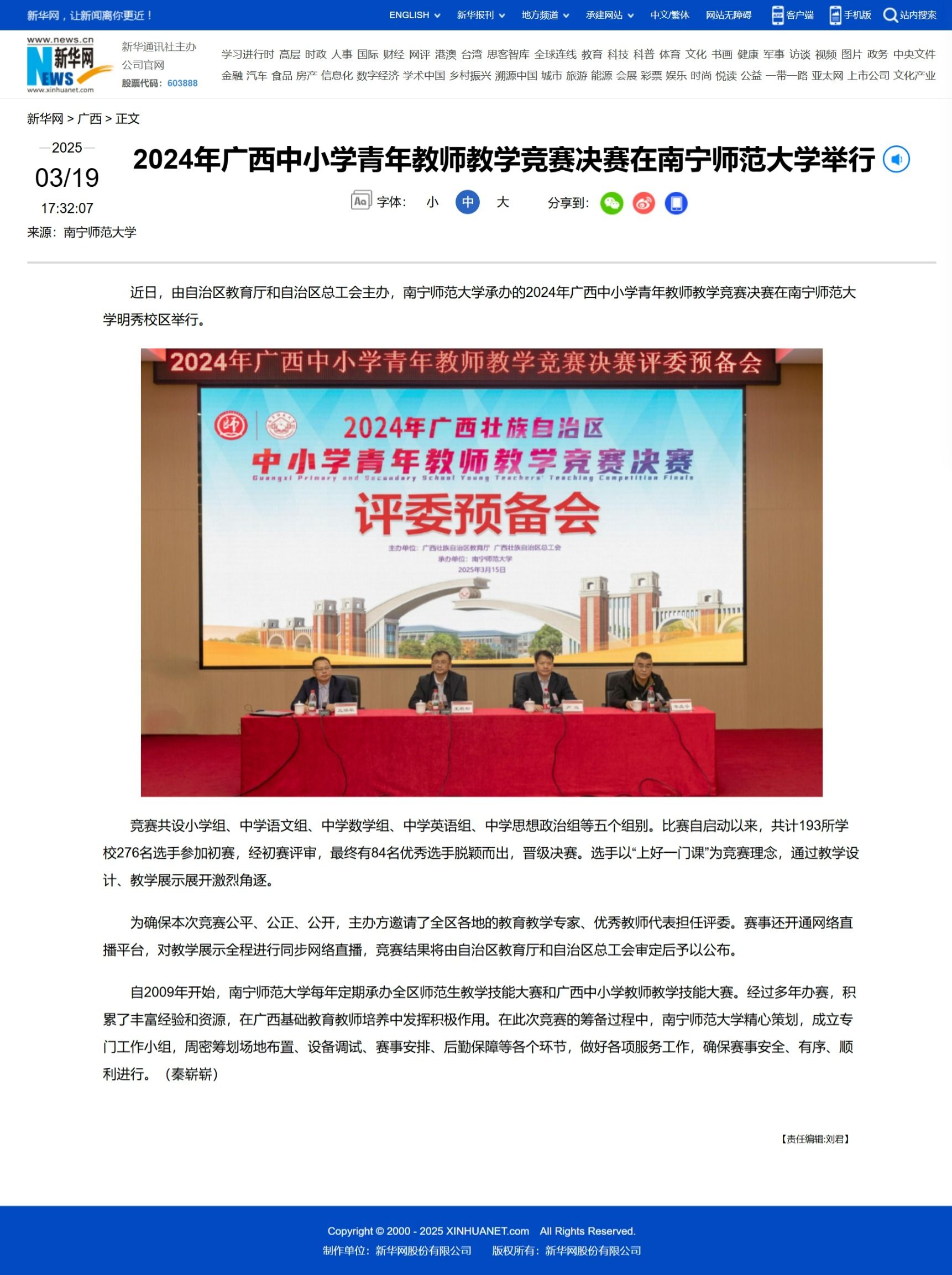 【新华网】2024年广西中小学青年教师教学竞赛决赛在南宁师范大学举行