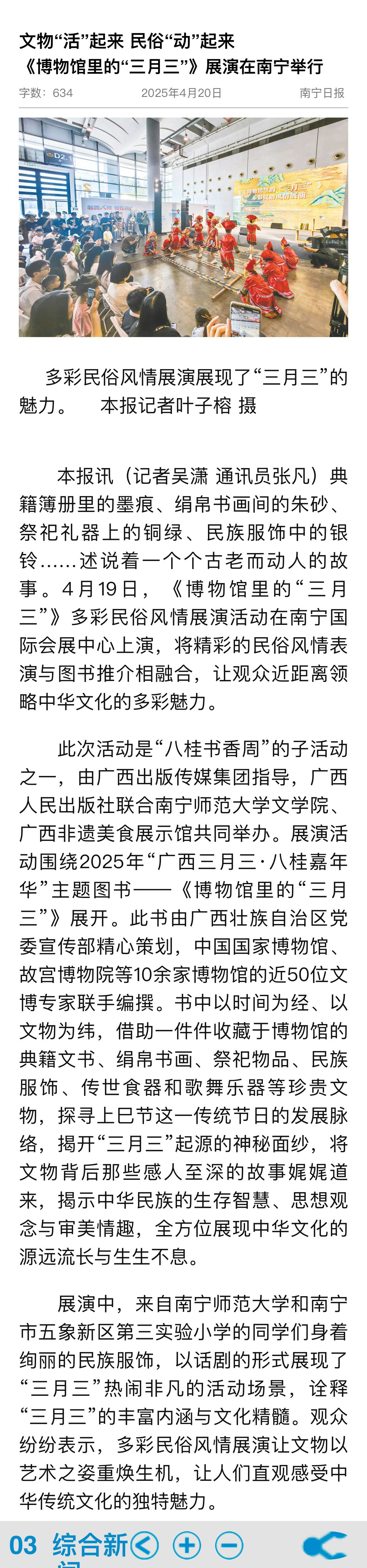 【广西人民出版社微信公众号】资讯|多彩民俗风情展演闪耀“八桂书香周”——《博物馆里的“三月三”》演绎传统魅力