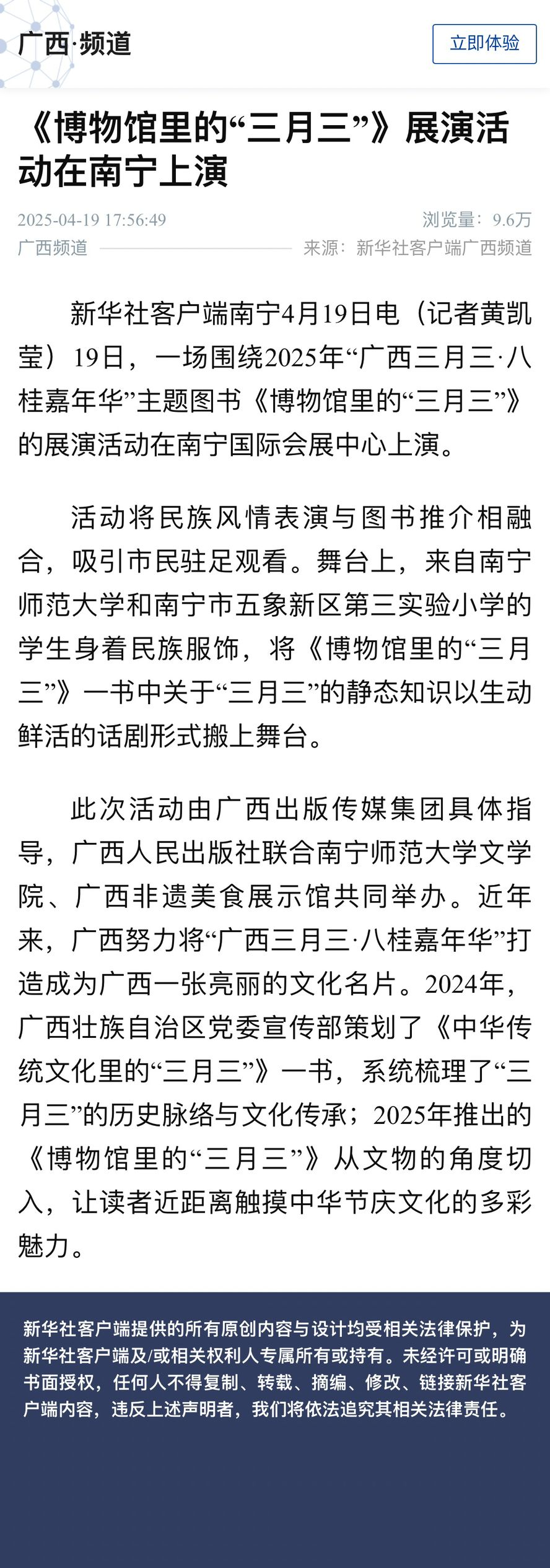 【广西云-广西日报】八桂书香周|多彩民俗风情展演 力推《博物馆里的“三月三”》