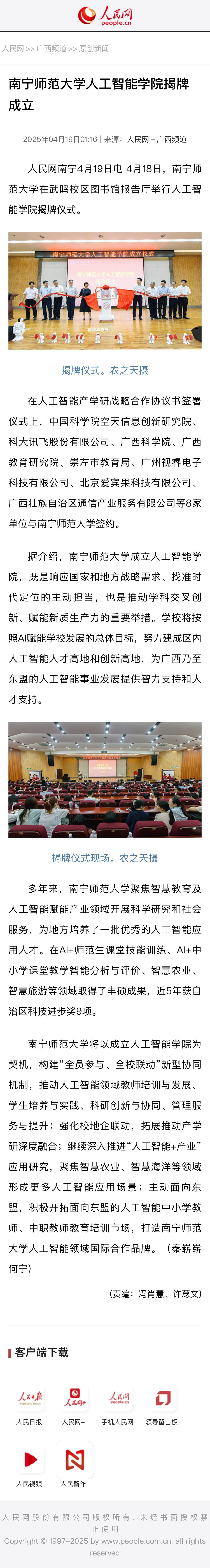 【人民网】南宁师范大学人工智能学院揭牌成立