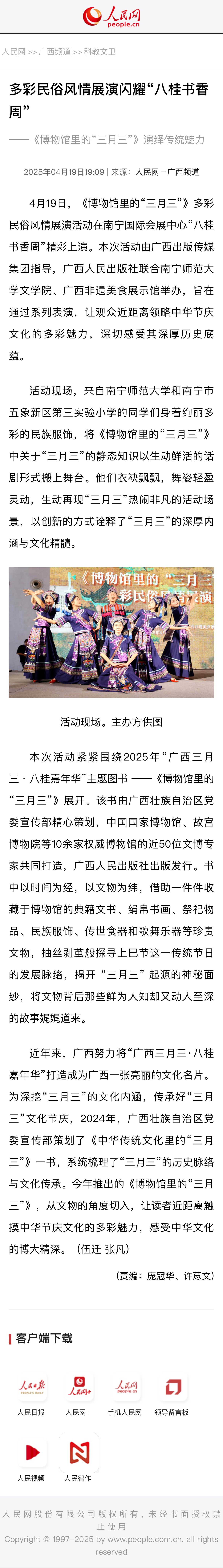 【人民网】多彩民俗风情展演闪耀“八桂书香周”——《博物馆里的“三月三”》演绎传统魅力