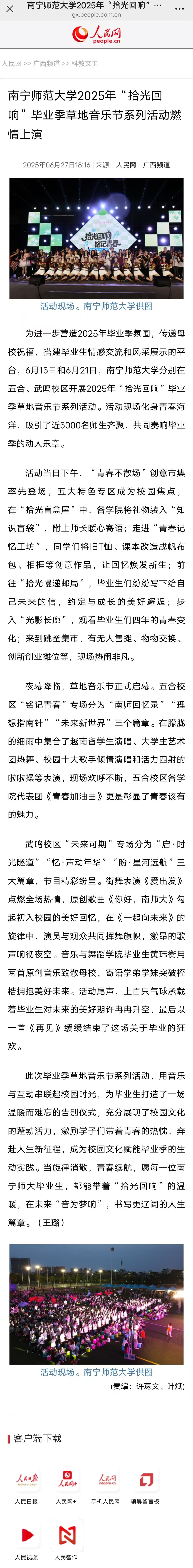 【人民网】南宁师范大学2025年“拾光回响”毕业季草地音乐节系列活动燃情上演