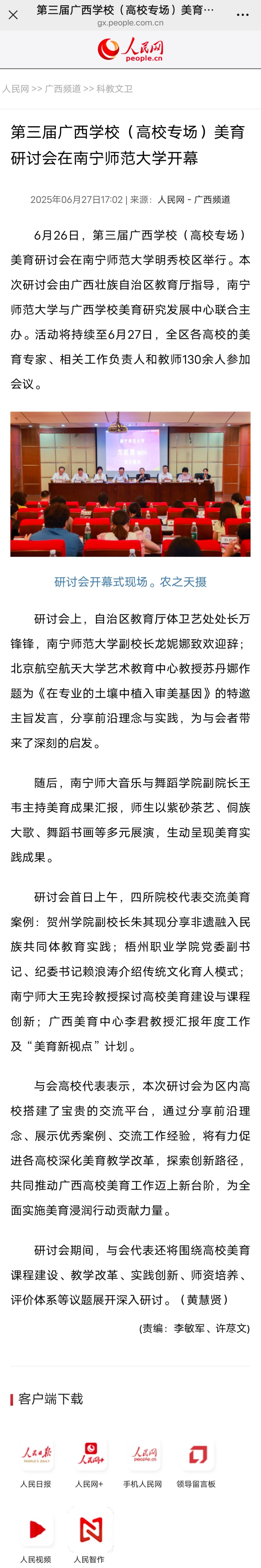 【人民网】第三届广西学校(高校专场)美育研讨会在南宁师范大学开幕
