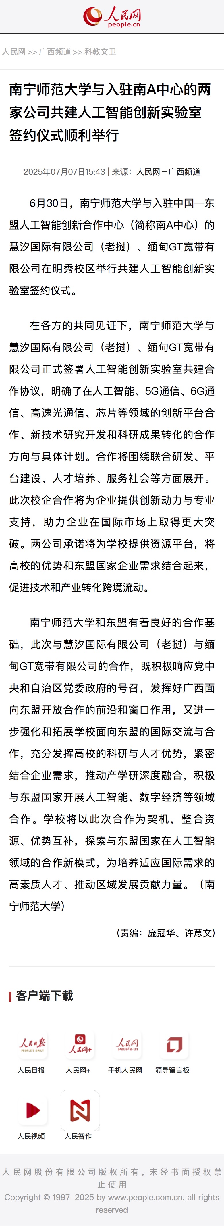 【人民网】南宁师范大学与入驻南A中心的两家公司共建人工智能创新实验室签约仪式顺利举行