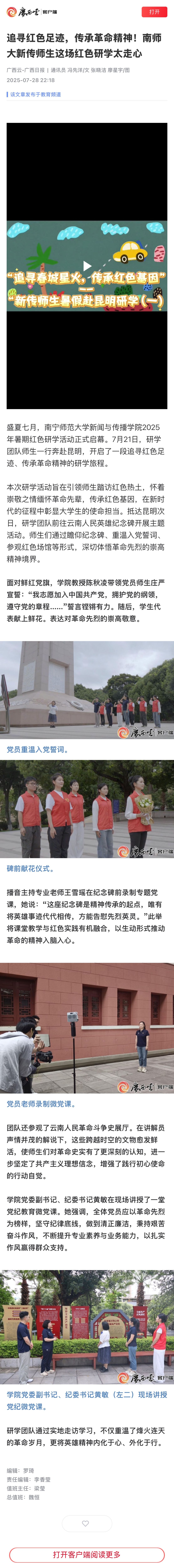 【广西日报-广西云客户端】追寻红色足迹,传承革命精神!南师大新传师生这场红色研学太走心