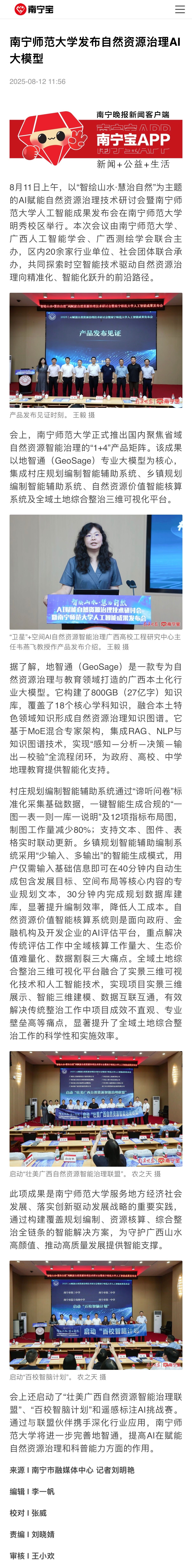 【广西新闻网】广西高校又有新突破!南宁师范大学发布自然资源治理AI大模型