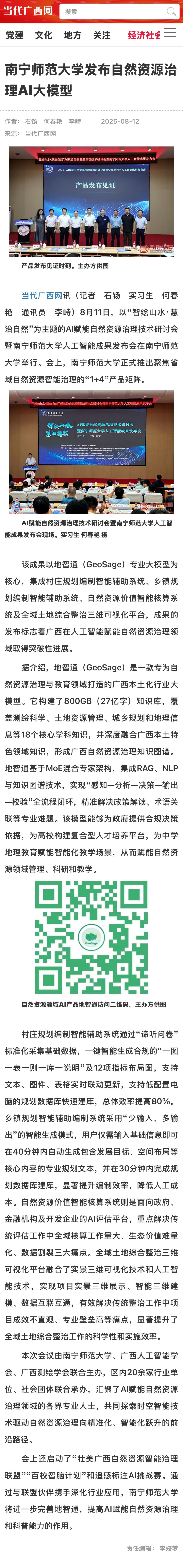 【当代广西网】南宁师范大学发布自然资源治理AI大模型