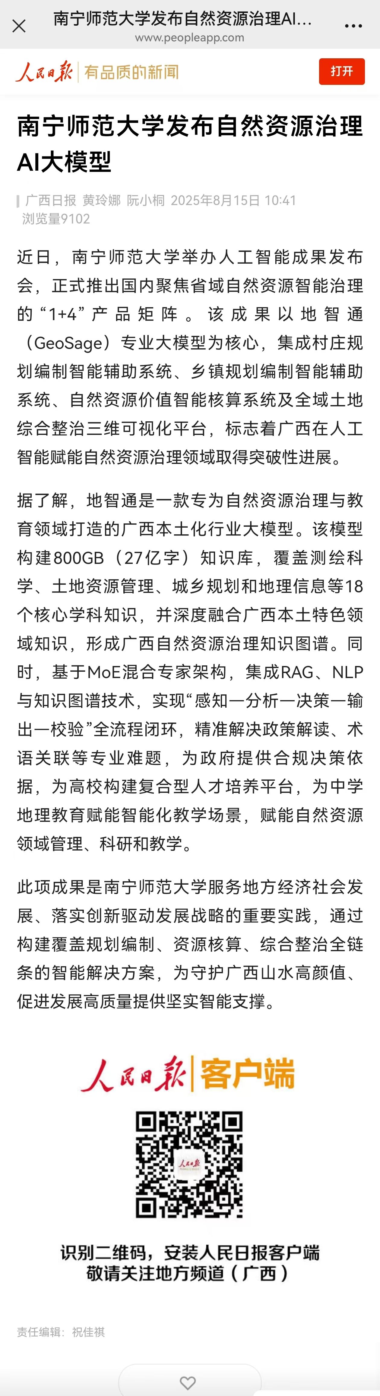 【人民日报】南宁师范大学发布自然资源治理AI大模型