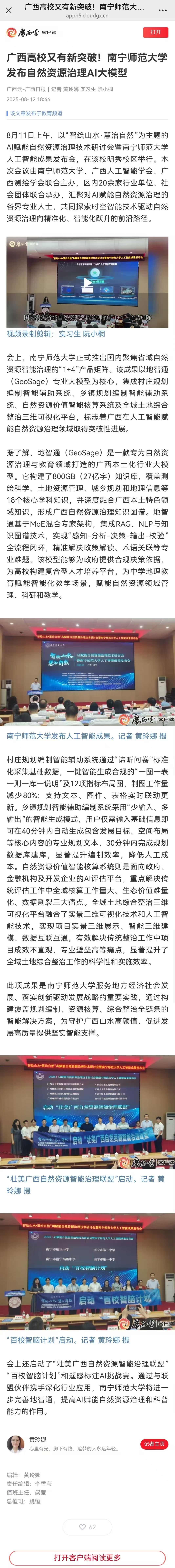 【广西云-广西日报】广西高校又有新突破!南宁师范大学发布自然资源治理AI大模型