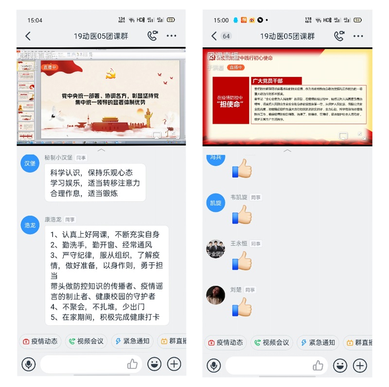 6月18日下午2:30,我院组织19级各班在钉钉团课群中开展以“科学防疫常态化,青春战疫有力量”为主题的团课学习活动。