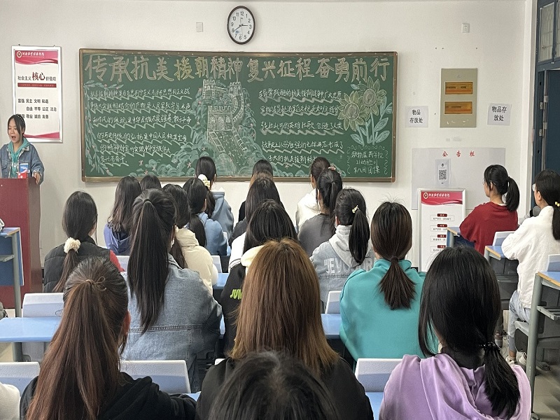 本次团课由各班主持人通过板报宣传、PPT演示等方式,向同学们介绍了抗美援朝中的英雄事迹、重大战役和历史背景。“千里刀光影,万里赴戎机”,大家被中国志愿军战士奋不顾身的爱国主义精神,英勇顽强、舍生忘死的革命英雄主义精神深深鼓舞,各位同学纷纷表示要继承和发扬抗美援朝精神, 坚定理想信心,强化使命担当,凝聚合力,以咬定目标不放松、不达目的不罢休的精神状态,奋勇向前。最后,主持人呼吁各位同学以抗美援朝精神为指引,勇于开拓,敢于斗争,砥砺前行,为社会主义建设赤诚奉献。