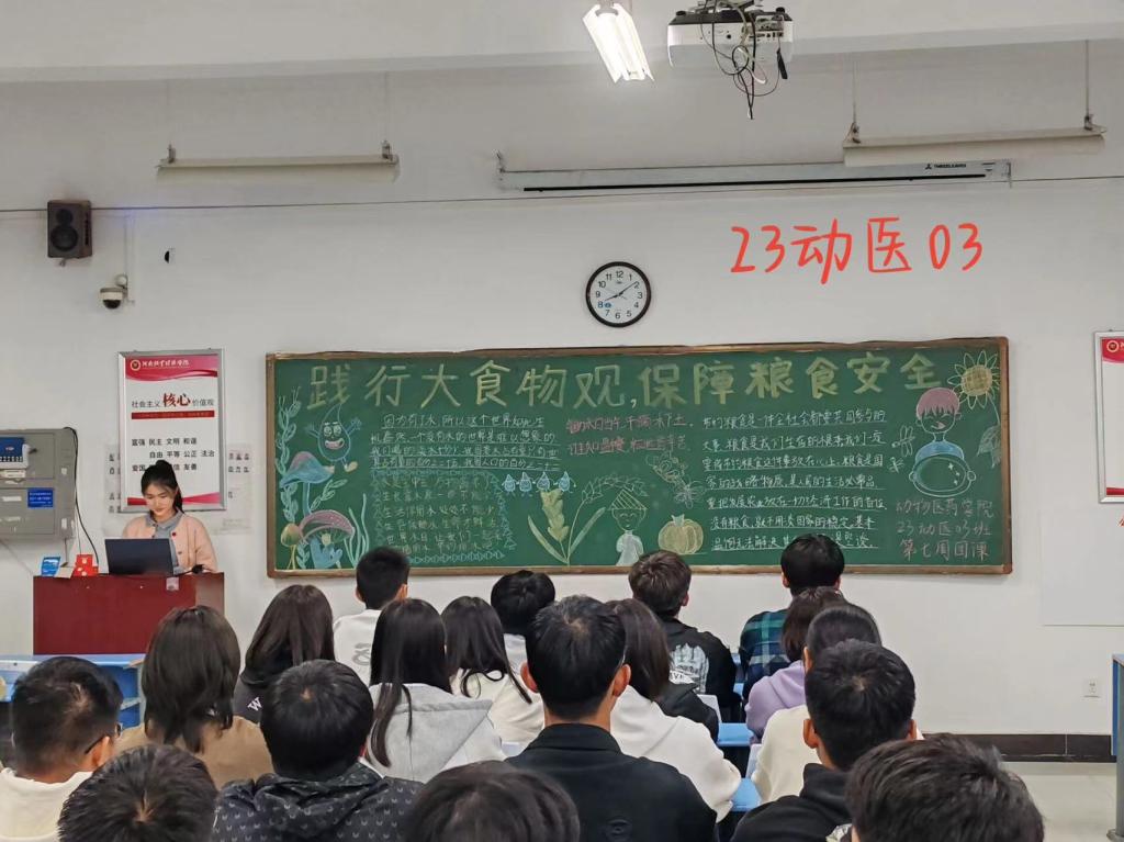 2023年10月16日是第43个世界粮食日,也是全国粮食安全宣传周。珍惜粮食,勤俭节约是中华民族的传统美德。为让同学们认识到粮食及其安全的重要性,激发对劳动人民的尊敬之情,进一步做到从小事做起,从实处开展珍惜粮食、节约水电的活动,2023年10月19日,动物医药学院组织2023级青年团员开展以“爱粮节粮,从点滴做起”为主题的团课活动。