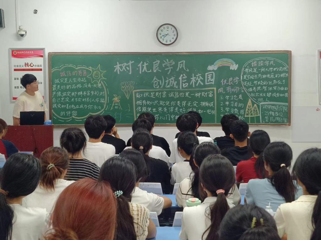 为弘扬中华民族诚实守信的传统美德,引导我校青年树立勤奋、严谨、求实、创新的学风,强学生的诚实教育,促进形成诚实守信的优良校园氛围,2024年6月12日,动物医药学院组织2023级青年团员开展以“树优良学风,创诚信校园”为主题的团课活动。