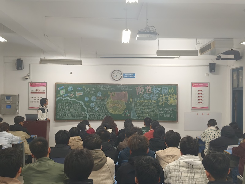 团课伊始,主持人带领大家认真学习《中华人民共和国反电信诈骗法》,通过对法律条文的研读,了解法律在打击和预防电信诈骗中的重要作用,进一步增强了同学们的反诈防诈意识。与此同时,主持人还强调了青少年参与电信犯罪的严重后果,以此告诫青少年要坚守法律底线,不可因一时的贪念或无知而陷入电信犯罪的泥潭。接着主持人通过播放相关反诈短视频,针对刷单返利、虚假购物等多发高发的电信网络诈骗犯罪类型,开展全方面、多角度、深层次的防范电信诈骗知识宣传。诈骗分子的手段层出不穷,花样翻新,最后,主持人结合真实案例向大家剖析了诈骗分子的惯用伎俩,同时讲解了如何识别诈骗信息,以及避免信息泄露等防诈骗的实用技巧,如不随意点击陌生链接、安装国家反诈中心APP实时预警等。